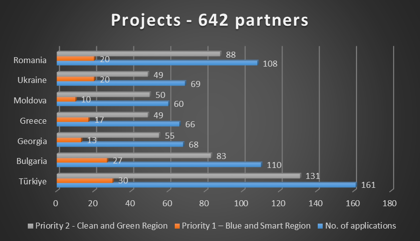 Interreg NEXT Karadeniz Havzasında Sınır Ötesi İşbirliği Programı 1.Teklif Çağrısı proje başvuru süreci 4 Temmuz 2023 tarihinde sona erdi. 30 Mart 2023 tarihinde duyuruları açılan 35,77 milyon avro bütçeye sahip çağrı kapsamında Program ülkelerinden 93’ü standart proje ve 58’i ise küçük ölçekli proje olmak üzere toplam 151 proje başvurusu sunuldu. 642 ortak kuruluşun yer aldığı ve toplam 125 milyon avro bütçeye sahip 151 proje arasında en fazla başvuru doğa koruma, biyoçeşitlilik, yeşil altyapı ve kirliliğin azaltılması alanlarından oldu.