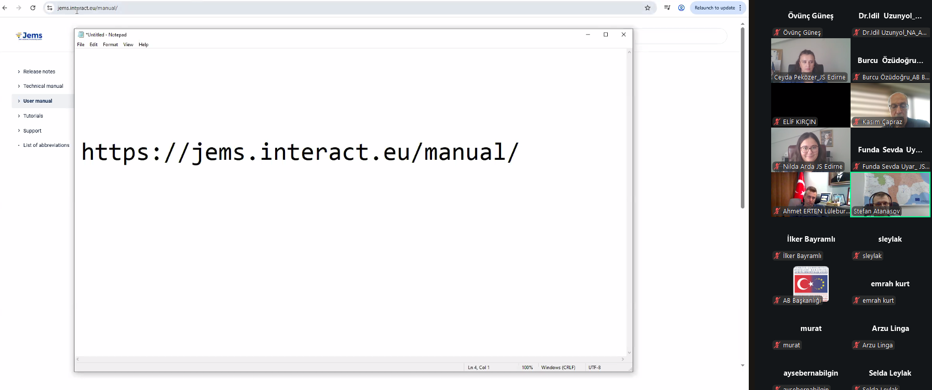 Övünç Güneş, Head of the Cross-Border Cooperation Department, delivered the opening speech for the training provided by the Directorate for EU Affairs, the National Authority for the programme. During the one-day online training, information was provided on the use of the Joint Electronic System (JEMS), which will be used to carry out many different technical processes during the implementation period, including reporting, submission and approval of change requests, and tracking of expenditure documents. Technical details to ensure successful progress during the implementation period, such as technical application, reporting and monitoring, communication and promotion, financial reporting, verification of expenditures, matters to be considered in investment projects, and types of changes that can be made in the project, were shared with the participants.