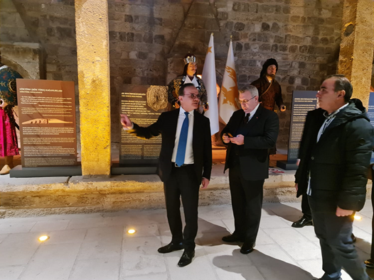 Ofis ziyareti sonrasında, Bulgaristan-Türkiye Sınır Ötesi İşbirliği Programının 2004-2006 döneminde 2.350.000 avrosu AB hibesi olmak üzere 3.135.000 avro bütçe ile 2007 yılında aslına uygun olarak restore edilen Ekmekçizade Kervansarayını ziyaret etti. 1609 yılında Sedefkâr Mehmed Ağa ve Edirneli Mimar Hacı Şaban Ağa’ya yaptırılan kervansarayın bir kısmı müze olarak, bir kısmı da tiyatro olarak kullanılmakta.