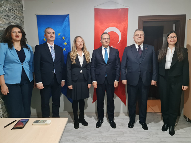 Bulgaristan-Türkiye Sınır Ötesi İşbirliği Programının uygulanmasına destek sağlaması amacıyla 2013 yılında Başkanlığımız tarafından oluşturulan Ortak Sekretarya Edirne Destek Ofisi, Bulgaristan’ın Hasköy şehrindeki Ortak Sekretarya Ofisine bağlı olarak çalışmaktadır. Bakan Yardımcısı Büyükelçi Bozay, Başkanlığımızla tam zamanlı iş sözleşmesi kapsamında istihdam edilen ofis personelinden çalışmaları hakkında bilgi aldı.