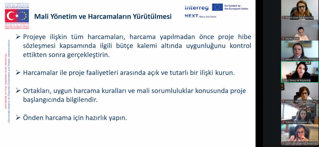 Interreg NEXT Karadeniz Havzası Programı 2021-2027 döneminin ikinci çağrısı kapsamında Programın Ulusal Otoritesi Avrupa Birliği Başkanlığı tarafından faydalanıcılara yönelik çevrim içi proje uygulama eğitimi verildi.