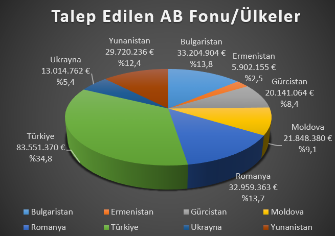 Bu kapsamda, çağrı başvuru istatistiklerine göre Programda yer alan Bulgaristan, Ermenistan, Gürcistan, Moldova, Romanya, Ukrayna,Yunanistan ve Türkiye’den 156’sı standart, 102’si ise küçük ölçekli proje olmak üzere toplam 258 proje başvurusu yapıldı. Böylece çağrı kapsamında yapılan başvurularla Program’dan 240,3 milyon avro hibe talep edilirken bu tutarın %34,8’ine denk düşen 83,55 milyon avrosu Türkiye’deki kurum ve kuruluşların yer aldığı Türk ortaklı projelerden talep edildi.