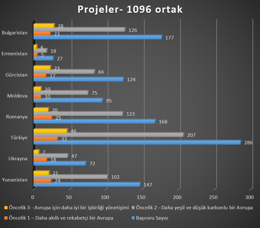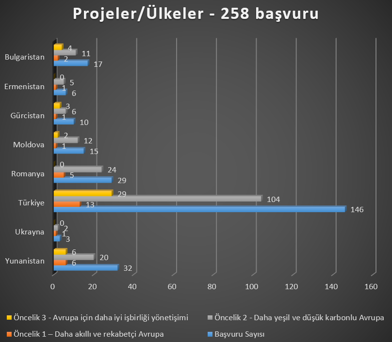 Türkiye, ayrıca tüm öncelikler altında da en çok proje ortaklığı kuran ülke oldu. Türkiye’den en çok ortaklık ve çağrının en çok ortaklığı “Daha yeşil ve düşük karbonlu bir Avrupa” önceliği altında, ikinci olarak “Avrupa için daha iyi bir işbirliği yönetişimi” altında ve üçüncü olarak da “Daha akıllı ve rekabetçi bir Avrupa” başlığı altında kuruldu.