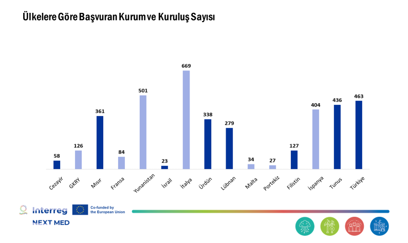 Program şartları dahilinde çağrıdan Türkiye’deki Marmara, Ege ve Akdeniz bölgelerinde yer alan 21 il yararlandı. Tekirdağ, Edirne, Kırklareli, Balıkesir, Çanakkale, İzmir, Aydın, Denizli, Muğla, Manisa, Afyonkarahisar, Kütahya, Uşak, Antalya, Isparta, Burdur, Adana, Mersin, Hatay, Kahramanmaraş ve Osmaniye’de bulunan kamu kurumları, özel kuruluşlar ve uluslararası örgütler başvuru yapma hakkına sahip oldu. Bu kapsamda, Türkiye’den 463 kurum ve kuruluş proje tekliflerini sundu.  Ülkelere göre başvuran kurum sayısına göre Türkiye bu rakamla üçüncü sırada yer alırken 501 kurum ve kuruluş ile Yunanistan ikinci, 669 kurum ve kuruluş ile İtalya birinci oldu.